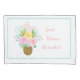 Ananas à la couronne d'un beau bouquet de roses et de feuilles. Rose, corail, jaune, bleu, vert, turquoise, marron. Moderne, frais, joyeux, mignon. Nom personnalisé rose + Sweet Dreams en police manuscrite tendance. Bordure turquoise.
