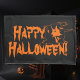 Caisse noire et orange de Halloween heureux de coussin. Décor à la maison effrayant pour la chambre à coucher. Pleine lune avec la sorcière sur un balai, un chat noir et des battes. Accessoires, décorations et approvisionnements de partie d'amusement.