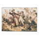 Le spray salé a piqué les yeux d'Edward Teach alors que l'aube saignait le pourpre sur la côte de la Caroline. Il est parti pour la redoutable Revenge de la Reine Anne, sa fierté et sa possession. Aujourd'hui, Blackbeard, comme on le connaissait dans les Caraïbes, captiva la modeste aventure, une veste qui fuit par rapport à son ancienne gloire. Le mécontentement couvait au sein de son équipage, un groupe déchiqueté maintenu loyal par la peur et la diminution des rations de rhum. — Soudain, le regard s'est mis à rugir, brisant le silence tendu. Deux navires, plus petits mais élégants, sont sortis de la brume, en les écrasant comme des requins affamés. Barbe noire maudite, reconnaissant les couleurs de la Marine royale. Le gouverneur Spotswood de Virginie avait finalement envoyé ses hounds. — La panique s'est répandue sur le visage de certains de ses hommes, mais Blackbeard a soulevé un défi, sa voix en plein essor coupant à travers l'air salé. Il s'est attaché sur un bandolier de pistolets, a allumé des allumettes lentes pour ses fusils à la signature tissés dans sa barbe, et a brandissé ses cutlass, une mâchoire dentelée d'acier. — Le navire principal, le Ranger, commandé par le jeune lieutenant Maynard, a déclenché un torrent de canons. Les colombages de l'Aventure gémissaient en signe de protestation. Barbe-Noire souffla les ordres, son équipage se démène pour retourner le feu. La fumée remplissait l'air, acride et étouffant. — Maynard, un adversaire rusé, dirigea le Ranger à côté de l'aventure, et s'empara des hameçons qui mordaient en bois pourri. La barbe noire, un tourbillon de fureur, a mené la charge sur le pont ennemi. Des pistolets aboyés, des culottes claquées dans un ballet mortel. Maynard, son visage gravé avec une détermination sinistre, parcourt les coups de Barbe Noire. L'acier chantait contre l'acier, étincelle le vol. — La bataille a fait rage à travers les ponts, une lutte désespérée pour la survie. Le sang tranchait les planches, et les gémissements des blessés se mêlaient au rugissement des canons. La Barbe Noire, un démon libéré, combattit la fureur d'une bête acculée. Il prit une coupe au bras, puis une autre à sa jambe, mais il se leva en arrière, sa barbe noire éclate de défi. — Mais les chiffres l'ont dit. Les hommes de Maynard, frais et disciplinés, repoussèrent lentement les pirates fatigués. Un par un, l'équipage de Blackbeard est tombé. Un coup de chance de Maynard a brouté la joue de Barbe Noire, l'aveuglant dans un oeil. Enragé, il lança un flou sur le jeune officier. Maynard s'enfuit, et la lame de Barbe Noire ne trouva que de l'air. L'élan a poussé Blackbeard en avant, hors équilibre. — En ce moment, Maynard vit sa chance. Avec une poussée d'adrénaline, il a dévoré, sa propre cutlass trouvant sa marque. La barbe noire grondait dans la douleur, une blessure béante à travers la poitrine. Il est rentré, son feu s'est éteint. Avant qu'il ne tombe, une grêle de mousquet a éclaté des hommes de Maynard. La barbe noire s'effondra, un chêne géant abattu à dernier. — Les autres pirates, leur chef mort et l'espoir brisé, se sont rendus. Alors que le soleil montait, projetant sa lumière dorée sur une scène de carnage, une nouvelle légende est née. La Barbe Noire, la terreur des mers, n'était plus. Sa capture, un témoignage sanglant de la poursuite acharnée de la justice, a fait écho à travers les vagues. — Maynard, son visage sombre avec victoire, a étudié le carnage. Son regard tomba sur la forme tombée de Barbe Noire. Avec un froid clin d'oeil dans les yeux, il ordonna que la tête du capitaine pirate soit coupée. La tâche horrible a été accomplie, la tête tenue en haut, un trophée sinistre et un avertissement sévère. — Le corps sans tête de Barbe Noire a été déversé sans cérémonie par-dessus bord, avalé par la mer tourmentée. La légende veut cependant que quelque chose d'extraordinaire se soit produit. Alors que le corps percutait l'eau, certains membres de l'équipage de Blackbeard, ceux qui croyaient à la magie noire murmuraient parmi les pirates, juraient qu'ils voyaient son cadavre sans tête se tortiller. Puis, avec une poussée d'énergie non naturelle, il rose droit. Pendant un moment, il resta là, un défi même dans la mort, avant de replonger sous les vagues. Ils ont revendiqué son corps, nourri par un pacte impie ou une pure volonté, nagé trois fois autour du navire ; la Légion arcobantienne, un terme utilisé par certains pirates pour décrire les neuf vies légendaires d'hommes particulièrement méchants, soi-disant accordée par le diable lui-même. — La tête de Barbe Noire, cependant, s'est embarquée dans un autre voyage. Il a été exposé sur l'esprit du navire de Maynard, un visage horrible à voir pour tous. Il a servi de preuve de la victoire du lieutenant et de message glaçant à tous ceux qui osaient suivre le chemin de Barbe Noire. — Les histoires tourbillonnaient autour de la tête de Barbe Noire après qu'elle ait atteint la Virginie. Certains prétendaient qu'il était exposé sur un poteau à l'entrée de la rivière Hampton, un rappel horrible pour tous ceux qui ont navigué en arrière. D'autres chuchotèrent d'un destin plus sombre, que le crâne était façonné en un bol de punch en argent macabre, portant à jamais le sourire froid du pirate décédé. — Peint en 1920, la capture de la Barbe Noire pirate en 1718, par Jean Leon Gerome Ferris. Cette oeuvre est du domaine public aux États-Unis tel que publié (ou enregistré dans le US Copyright Office ) avant le 1er janvier 1929.