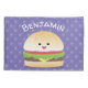 Ce mignon hamburger heureux est lumineux et adorable. Beaucoup de plaisir gourmand dessiné dans un joyeux style de dessin animé.