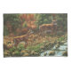 Whitetail fait et buck marcher à travers la forêt le long d'un ruisseau en cascade de rochers et cascades. OEuvre d'art réaliste créée à partir d'une peinture à l'huile originale de Crista S. Forest, artiste équin et animalier.