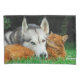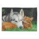 Housse D'oreillers chat somalien et Husky sibérien mignon amis câliné