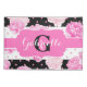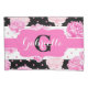 Rose noir & blanc Tirures horizontales & Pois & Aquarelle Fleurs de pivoine Cute Chic Monogramme Nom & Initiale Personnalisée avec Votre texte, Nom, Initiale ou Citation Personnalisée. Joli design chic Géométrique Géométrique Gras Horizontal, avec Dots. Fun texte personnalisé, en Motif d'aquarelle moderne rose & noir Peonies florales.