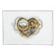 Coeur steampunk mécanique, volumétrique, avec manomètre, acier et or sur arrière - plan blanc. Style Steampunk.