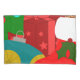 Cette taie d'oreiller a une conception de Noël d'un collage d'un arbre de Noël, d'un ornement, d'un bas, d'un cadeau et d'un garçon en pain d'épices.