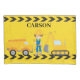 Cool porte-oreiller pour excavatrice de construction personnalisée pour un enfant qui aime les véhicules de construction jaune en noir et jaune. Décor de chambre amusant pour un petit garçon qui aime les voitures et les camions. Customisez avec le nom de votre enfant sous le ruban de prudence noir et jaune pour sa chambre.