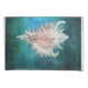 Une coquille de conque délicatement rose si réaliste que vous pouvez presque entendre l'océan, sur un arrière - plan bleu océanique vibrant.