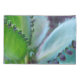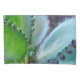 La photographie originale de ZoeSPEAK sur ce Jeu de Pillowcase est un closeup semi-abstrait d'un plante kalanchoe. La photo montre les feuilles sous différents éclairages, ce qui fait que leur couleur vert normalement bleuté semble jaune vert et bleu aqua. La nouvelle croissance sculpturale aux bords des feuilles, ressemblant à des bijoux sur chaque feuille, apparaît vert foncé et bleu turquoise profond.
