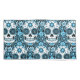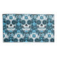 Crâne à sucre Dia de los Muertos dans les tons colorés de bleu entouré de fleurs.