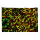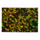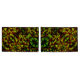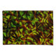 Dessin rappelant les rubans entrelacés dans un vert légèrement jaunâtre et un brun rougeâtre taché qui rappelle quelque chose brûlé. L'image a subi un effet "sculpté" qui a causé un assombrissement de la couleur et une certaine perception de la luminosité dans certaines parties et de petites taches ridées dans d'autres.
