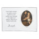 Patron Saint design front features a reproduction of the famous painting, "Saint Joseph and the Christ Child" by the Spanish artist, Bartolome Esteban Murillo at right as an oval and is displayed against a white background. (Image is in public domain) Your customizable prayer is displayed beside image. The name you provide is featured below in an elegant font. Reverse features the customizable text, "Saint Joseph, pray for me!"