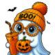 Ghost Halloween Ghost Cute Bougee avec Citrouille & Boire | Automne Sublimation Design pour enfants, chemises et artisanat Rendre vos modèles Halloween plus adorables avec ce mignon Ghost PNG! Habillé de lunettes élégantes aux perles orange, d'une beanie de pom-pom "BOO !" et d'une boisson éffrayante et d'un citrouille jack-o’lanterne, ce fantôme bougeois est plein de charme et de vibrations !