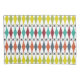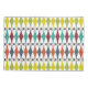 Cette taie d'oreiller a un design moderne du milieu du siècle des diamants étirés et des starbursts sur un champ de blanc.