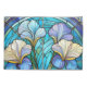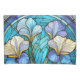 Coque de coussin de couleur Art Nouveau imprimé avec un look botanique en vitrail, avec des iris dans les tons turquoise, bleu et violet pastel pâle.