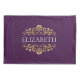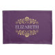 Un élégant oreiller monogramme violet et doré. Ajoutez votre nom entre la floraison dorée sur le devant. Conçu pour vous par Blackberry Boulevard.