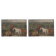 Ce dessin présente une peinture de l'artiste anglais John Frederick Herring Sr. (1795-1865). Il montre une scène rurale traditionnelle avec des chevaux traversant un chemin de terre. Les chevaux appartiennent au roi d'Angleterre. Il y a des arbres qui poussent sur l'herbe au loin. Les chevaux sont de couleurs différentes : l'un des chevaux a des cheveux blancs tandis que les autres chevaux ont des manteaux de différentes nuances de brun. Deux élégantes femmes sont assises sur le chemin.