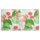 Aquarelle design motif avec des fleurs et des oiseaux flamands, la monstère et les feuilles de palmiers.