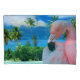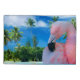 Oiseaux extraordinaires de faune, flamants. Flamant rose, mer, paumes et plage tropicale.