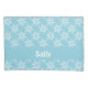 Ajoutez votre nom sur ce flocon blanc sur le design motif arrière - plan bleu.