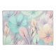 Ce design présente un arrière - plan violet clair avec des fleurs pastel et des feuilles. Les fleurs sont dans les tons rose, bleu et vert, tandis que les feuille sont dans les tons rose, vert et orange.