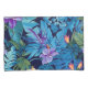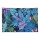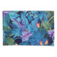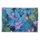 Beau design tropical fleuri dans les tons bleus, violet et vert sur ce coque coussin