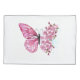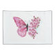 Flower arrangement of pink butterfly with rose Japanese cherry blossoms on white background.