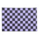 A checkerboard pattern with alternating lavender and black squares fills the image. The repeating geometric design gives a balanced and rhythmic appearance.