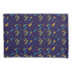 Front side of a pillowcase with a dark purple background featuring a vibrant pattern of rockets and planets. The back side is plain white. Fun and playful design.
