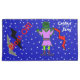 Décor unique pour les enfants dans l'espace extérieur de la chambre. Arrière - plan bleu marine amusant avec des étoiles blanches et le libellé, Explorons la Galaxie, Blast-Off. Capitaine Zoey, une alien de robot verte avec un joli ensemble de couleur violet rose et des fleurs, sourit avec ses amis de vaisseau spatial alien à l'envers. Un robot spatial cool thème alien pour les chambres enfants. Conçu pour les coques coussins king size. Oeuvre Graphique originale Caractères de dessin Design Copyright © 2014 TamiraZDesigns. Tous droits réservés