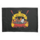 Barbecue grill sur charbon flamboyant, bannière de défilement avec texte personnalisé sur fourche et spatule.