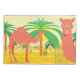 Ce clipart comporte 2 chameaux dans le désert près de quelques palmiers.