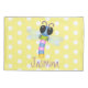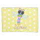 Cette jolie libellule bleue et rose est brillante et colorée ! Dessiné dans un joyeux style de dessin animé sur un arrière - plan à motifs jaunes.