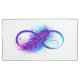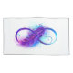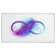 Infinity symbole with a beautiful feather painted in purple and blue bright colors on white background