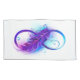 Infinity symbole with a beautiful feather painted in purple and blue bright colors on white background