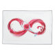Infinity symbol of continuous stream of red wine pouring into glass wine glass on white background.
