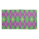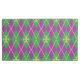 Un motif arlequin de vert et de violet se transforme en Jacquard ludique avec une superposition de silhouettes de diamants dorés et de fleur de lis, créant un motif amusant et coloré parfait pour toute célébration Mardi Gras influencée par la Nouvelle-Orléans.
