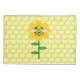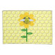 Ce magnifique oreiller présente une image graphique d'un joli bourdon jaune avec des rayures noires, des yeux, des antennes et des jambes. Il possède de jolies ailes bleues et blanches. L'abeille est assise au milieu d'un tournesol jaune doré. La fleur a une tige verte et trois feuilles. Le message "happy bee day" (Jour heureux des abeilles) apparaît sur les trois feuilles. L'arrière - plan est composé d'un motif jaune peigne.