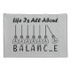 typographie de script de brosse de cool La vie est tout à propos d'équilibre, équilibre, script de brosse, ampoule, cursive, citation de vie, ampoules, pendule, dicton de vie, écriture de script, lampe incandescente, devis de balance, billes de balance, typographie de script
