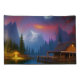 belle cabine en rondins nichée dans une crique isolée entourée de montagnes, baignée de lumière lune. Art généré par Ai par minx267