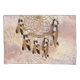 Un design d'attrape-rêves avec des garnitures dorées et marron qui comprend une toile ronde en bambou de la vie avec des plumes de tons marron et des perles rouges sur un fond de plume doux.