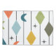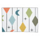 Cette taie d'oreiller a un design moderne du milieu du siècle de lignes verticales avec des diamants et des boomerangs, avec des éclats d'étoiles dispersés dans l'arrière - plan.