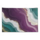 Soft flowing waves of teal and deep purple blend together with shimmering gold sparkles. A stylish abstract pattern with a modern and luxurious feel.