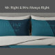 Apportez de l'humour et de l'amour dans votre chambre avec ce charmant ensemble de 2 taies d'oreiller standard ! Avec les phrases ludiques « Mr. Right » et « Mrs. Always Right », ces taies d'oreiller sont parfaites pour les couples qui aiment rire un peu avec leur amour.