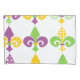 Cette taie d'oreiller a un design Mardi Gras de fleur de lis bordée à travers le design avec différents designs.