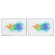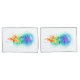 Grande méduse irisée, artistiquement dessinée, brillante, avec de longues tentacules sur le blanc, peinte sur l'arrière - plan multicolore. Méduse arc-en-ciel.
