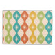 This is elegant pillow case featuring mid century modern atomic starbursts pattern placed on ogee ovals in red, green, mustard and teal.