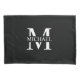 Monogramme personnalisé et cadeaux de nom avec monogramme blanc personnalisé dans le style de police serif classique avec boîte de nom au milieu du monogramme sur arrière - plan noir.