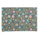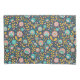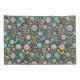 Caractéristiques de conception ce d'art populaire un rose, une orange et un motif floral turquoise sur un arrière - plan bleu-foncé.