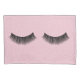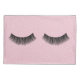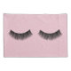 Paire de cils noirs sur des points d'épingle blancs et un arrière - plan rose pastel.