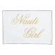 Nauti Girl Bad Buoy His Hers Gold Script Nautical Coussin Coque présente le texte amusant "Nauti Girl" et "Bad Buoy" en élégant script or sur un arrière - plan blanc. Une chambre à coucher à thème nautique fabuleuse. Conçu par ©Evco Studio www.zazzle.com/store/evcostudio